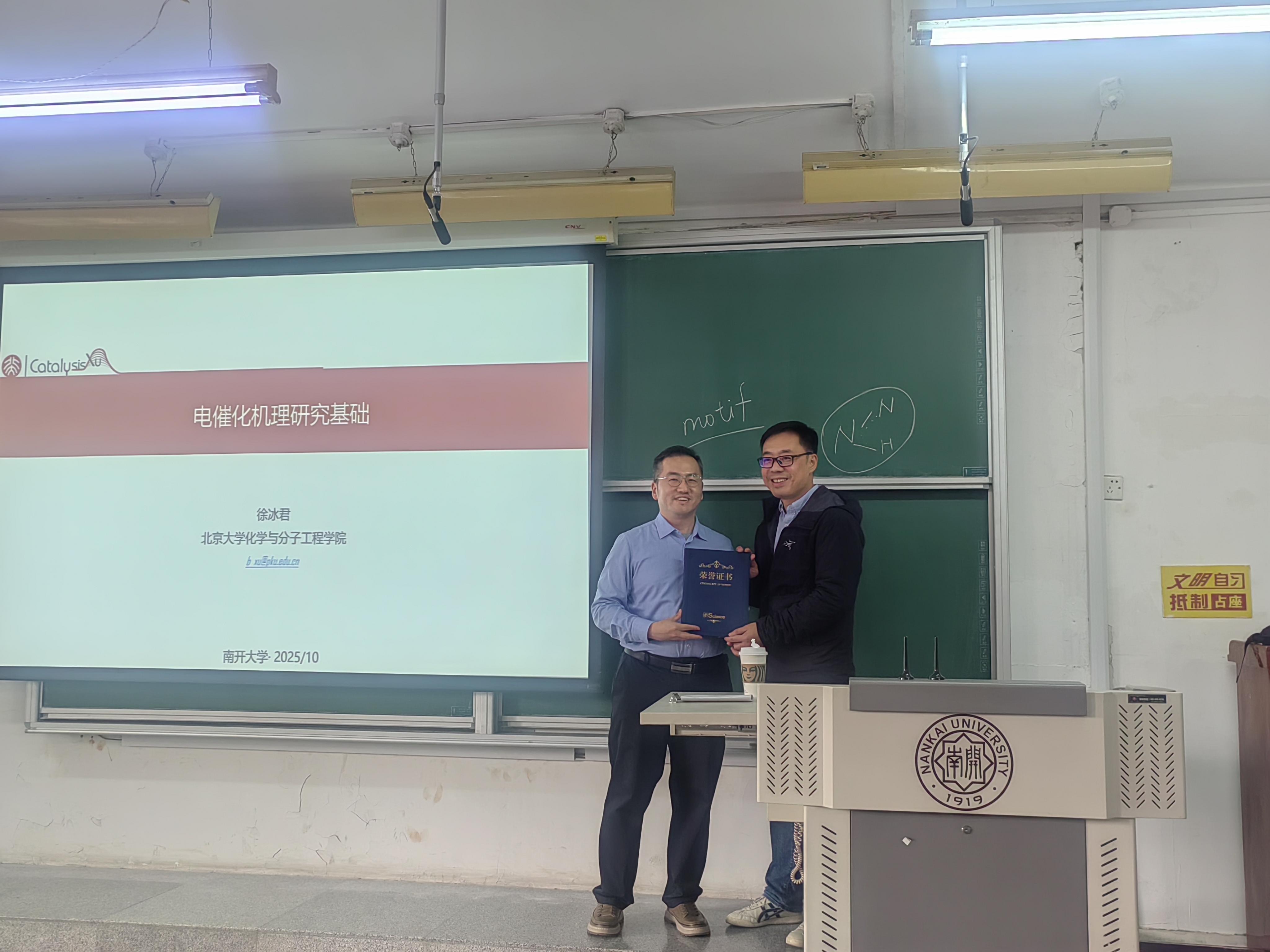 2025年10月31日下午,eScience能源动力前沿论坛邀请北京大学徐冰君教授作了题为“电催化机理研究基础”的报告,张凯研究员主持会议,并为报告人颁发证书。论坛开始前,徐教授来到eScience编辑部进行了座谈交流。