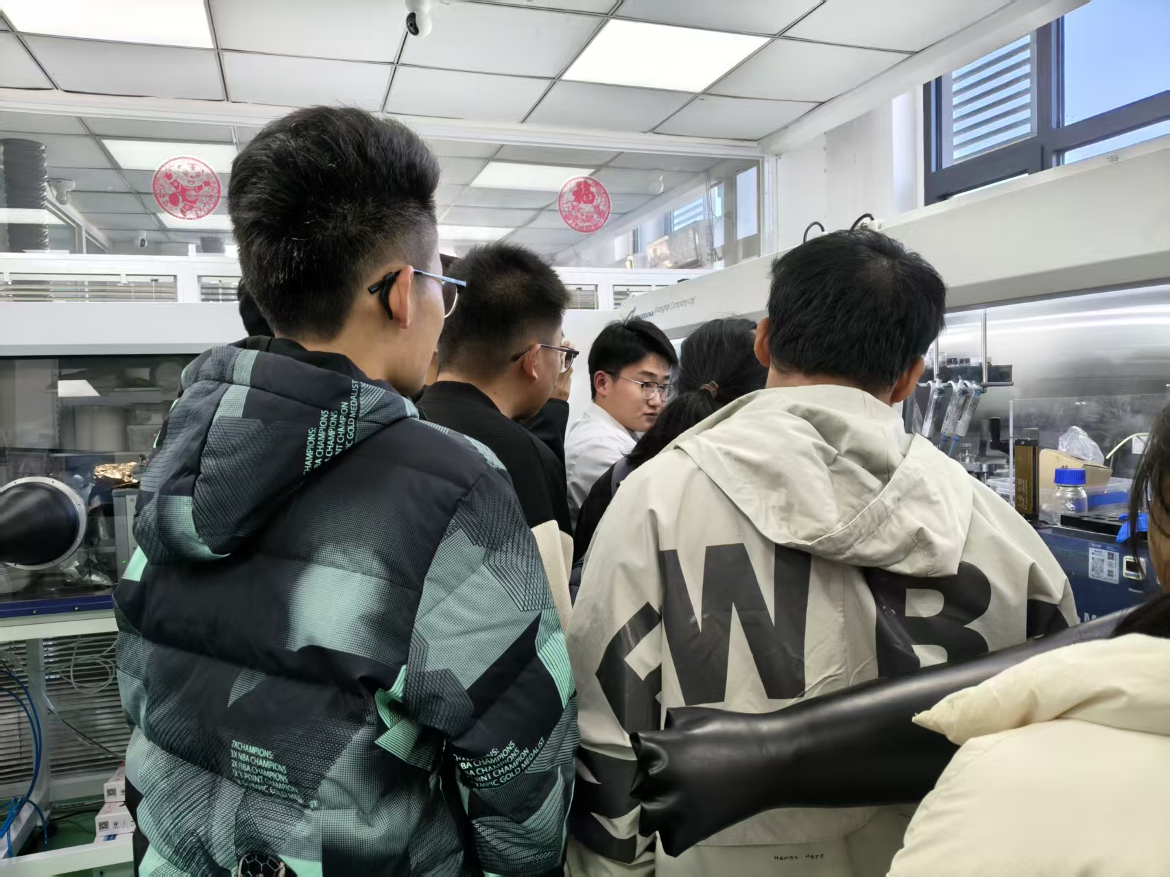 2025年11月2日,化学学院40余位大一新生来到张凯研究员课题组参加“我爱实验室”活动。本科新生在课题组研究生的带领下参观学习了科研研究过程,包括电极制备,固态电解质的合成,电池组装等,并参观了课题组实验室所在的大型仪器平台和软包电池组装线。最后,张凯研究员做了向本科新生介绍了新能源电池的重要意义、基本原理、现存挑战和未来发展方向。孙浩翔、张桐瑞、田孝萌、李博远、梁子欣、邓艳霞等作为志愿者参与了此次活动。