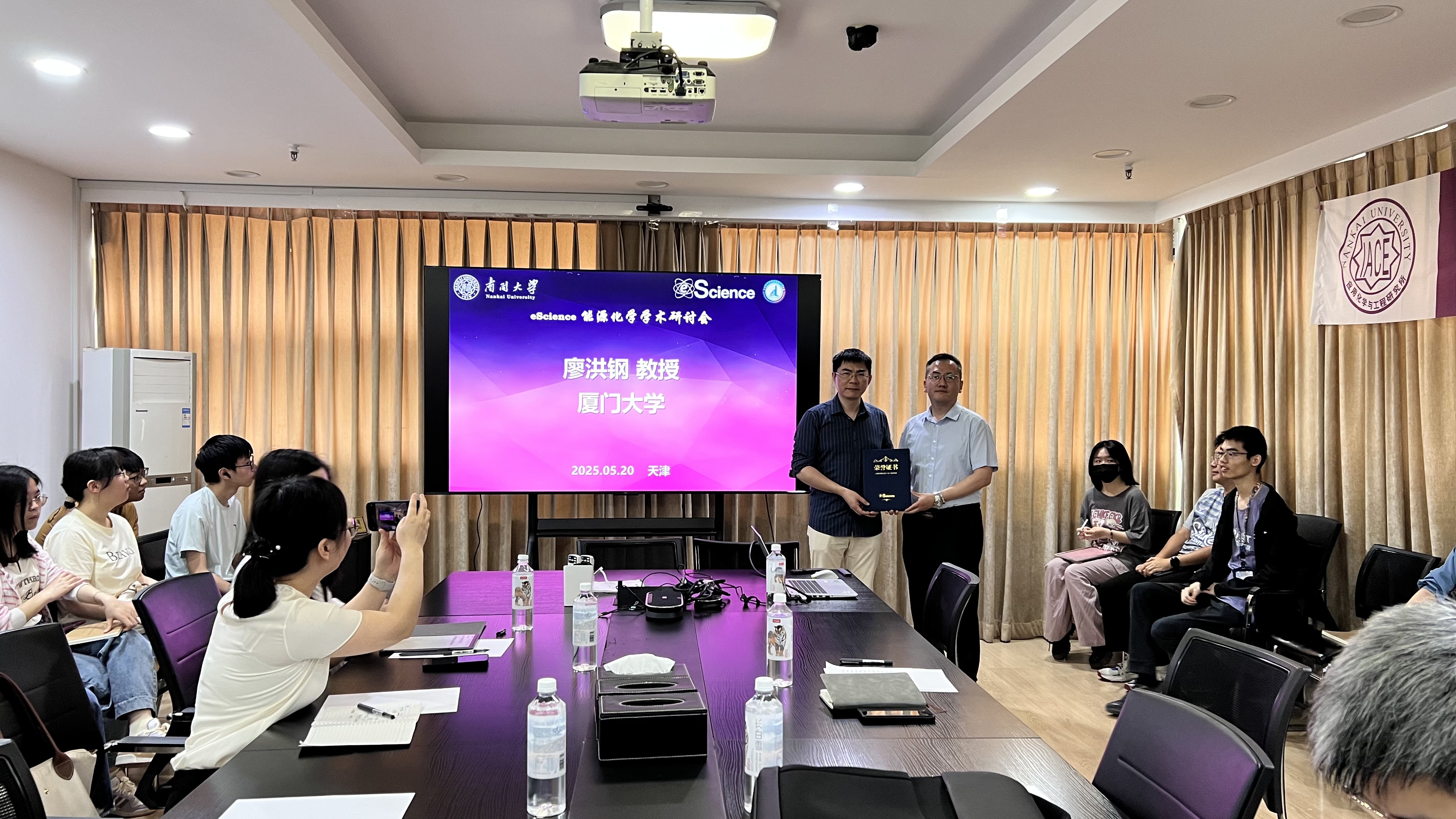 2025年5月20日上午,eScience能源化学学术研讨会在联合楼二楼会议室召开,厦门大学廖洪钢教授作了题为“电化学界面结构与反应动态原位电镜研究”的报告,张凯研究员主持会议,并为报告人