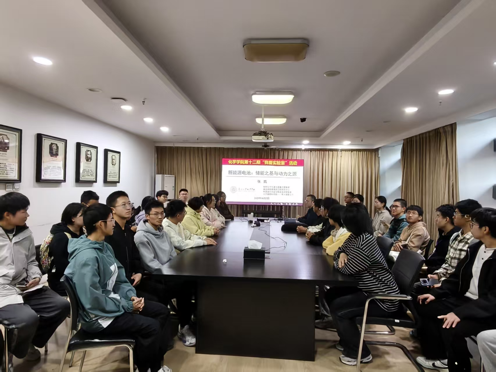 2025年11月2日,化学学院40余位大一新生来到张凯研究员课题组参加“我爱实验室”活动。本科新生在课题组研究生的带领下参观学习了科研研究过程,包括电极制备,固态电解质的合成,电池组装等,并参观了课题组实验室所在的大型仪器平台和软包电池组装线。最后,张凯研究员做了向本科新生介绍了新能源电池的重要意义、基本原理、现存挑战和未来发展方向。孙浩翔、张桐瑞、田孝萌、李博远、梁子欣、邓艳霞等作为志愿者参与了此次活动。